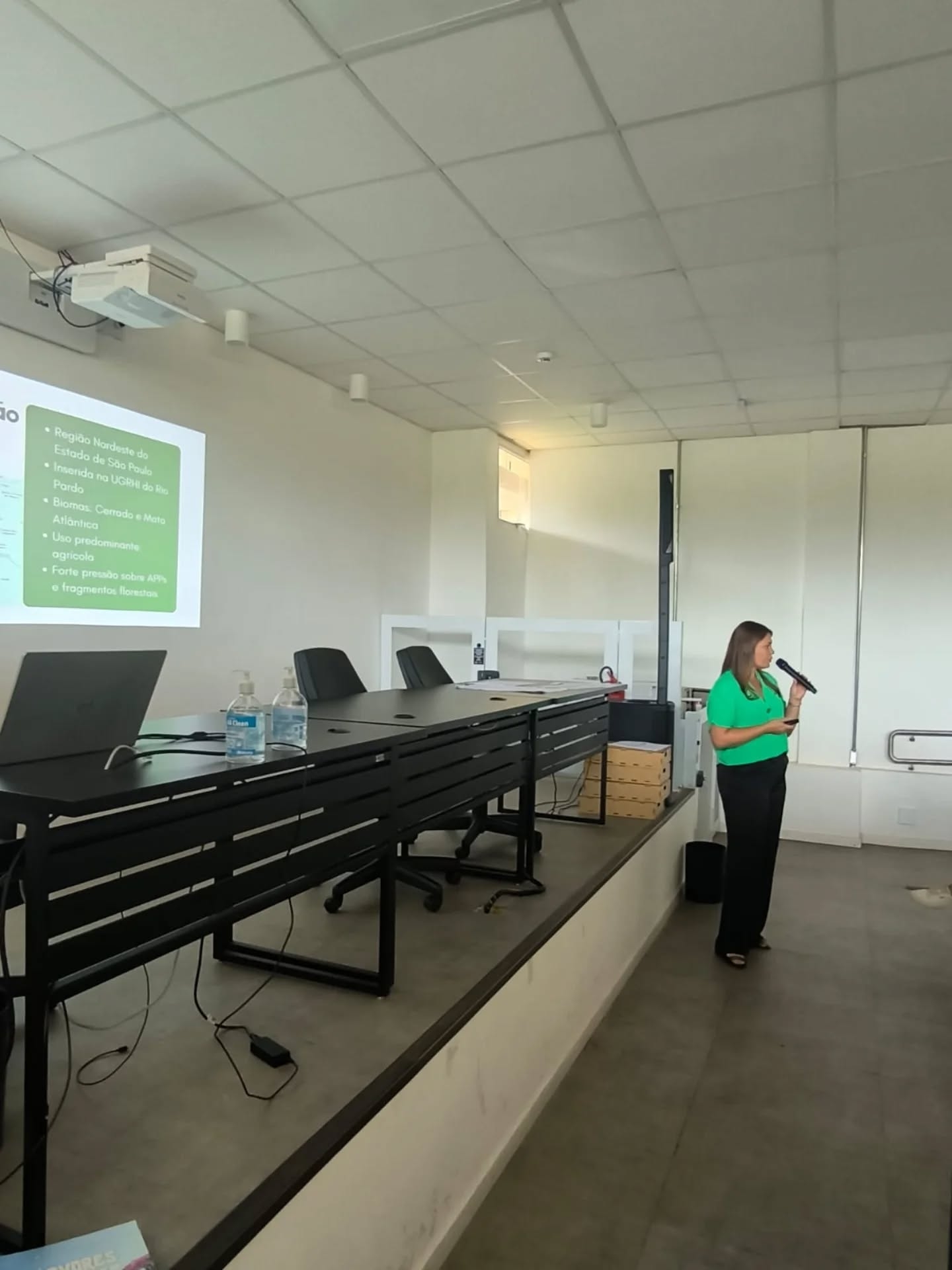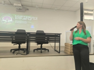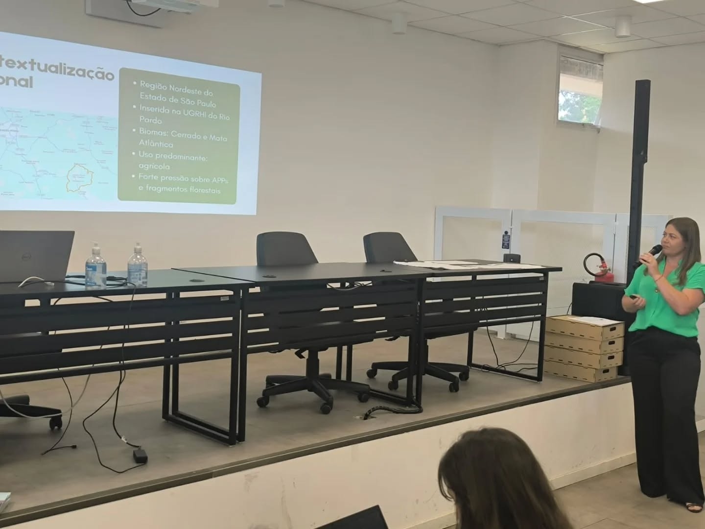 Durante a programação, a diretora Camila apresentou as iniciativas desenvolvidas em Santa Rosa de Viterbo na área ambiental, com destaque para os projetos de educação ambiental, reflorestamento e demais ações de preservação e recuperação de áreas degradadas. Ela também detalhou o processo de obtenção de recursos por meio do Fundo Estadual de Recursos Hídricos (FEHIDRO), compartilhando orientações e boas práticas adotadas pelo município.