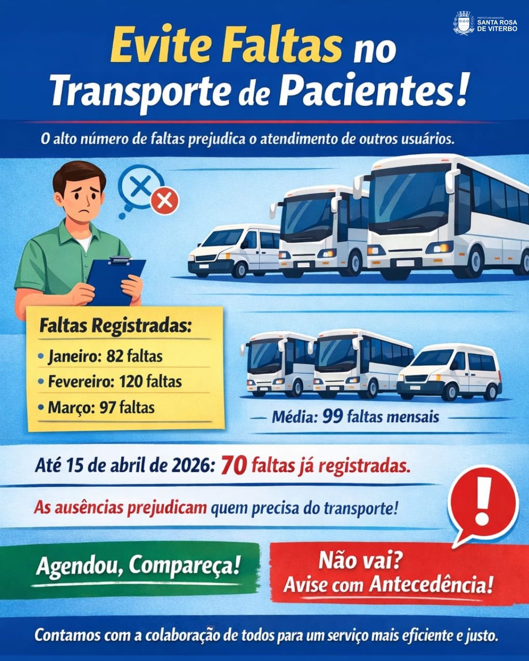 O transporte de pacientes é um serviço essencial, organizado para garantir o acesso à saúde de quem mais precisa. No entanto, o alto número de faltas tem impactado diretamente o atendimento de outros usuários nos horários das 4h45 e 9h00, de segunda a sexta-feira, com destino a Ribeirão Preto.