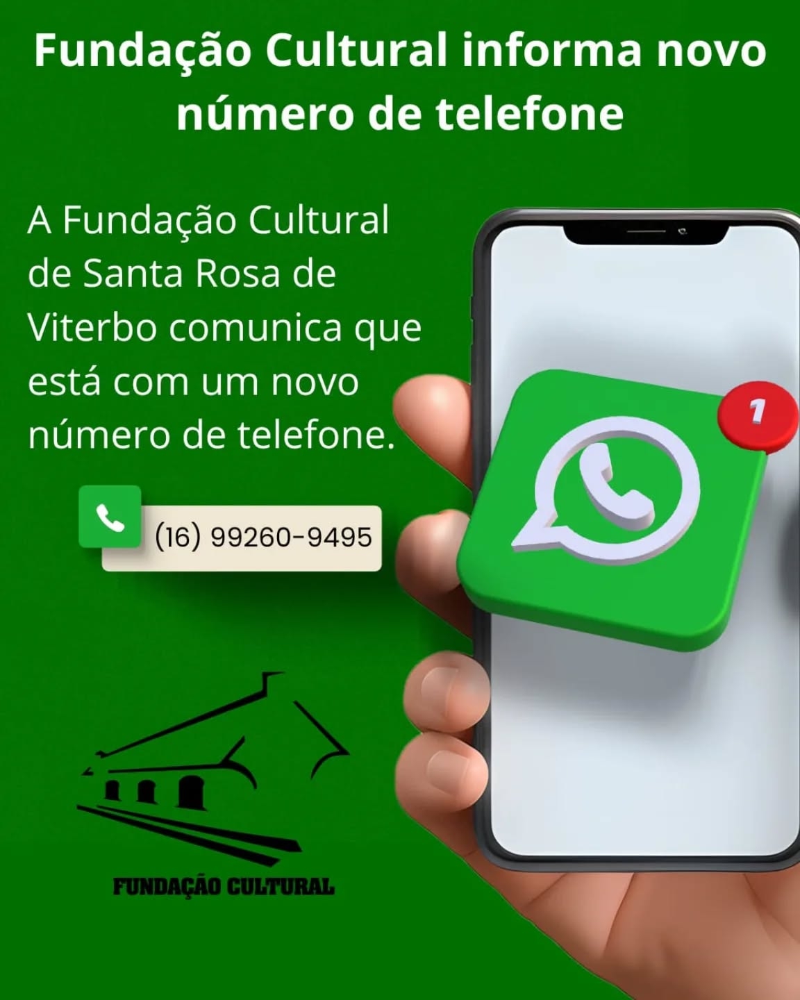 A Fundação Cultural de Santa Rosa de Viterbo comunica que está com um novo canal de atendimento. Agora, os interessados podem entrar em contato diretamente pelo WhatsApp, por meio do número (16) 99260-9495.