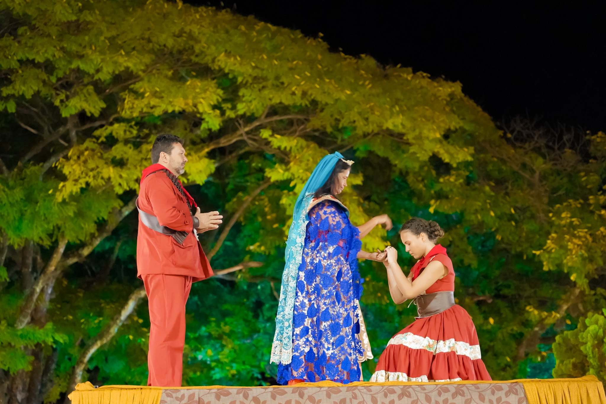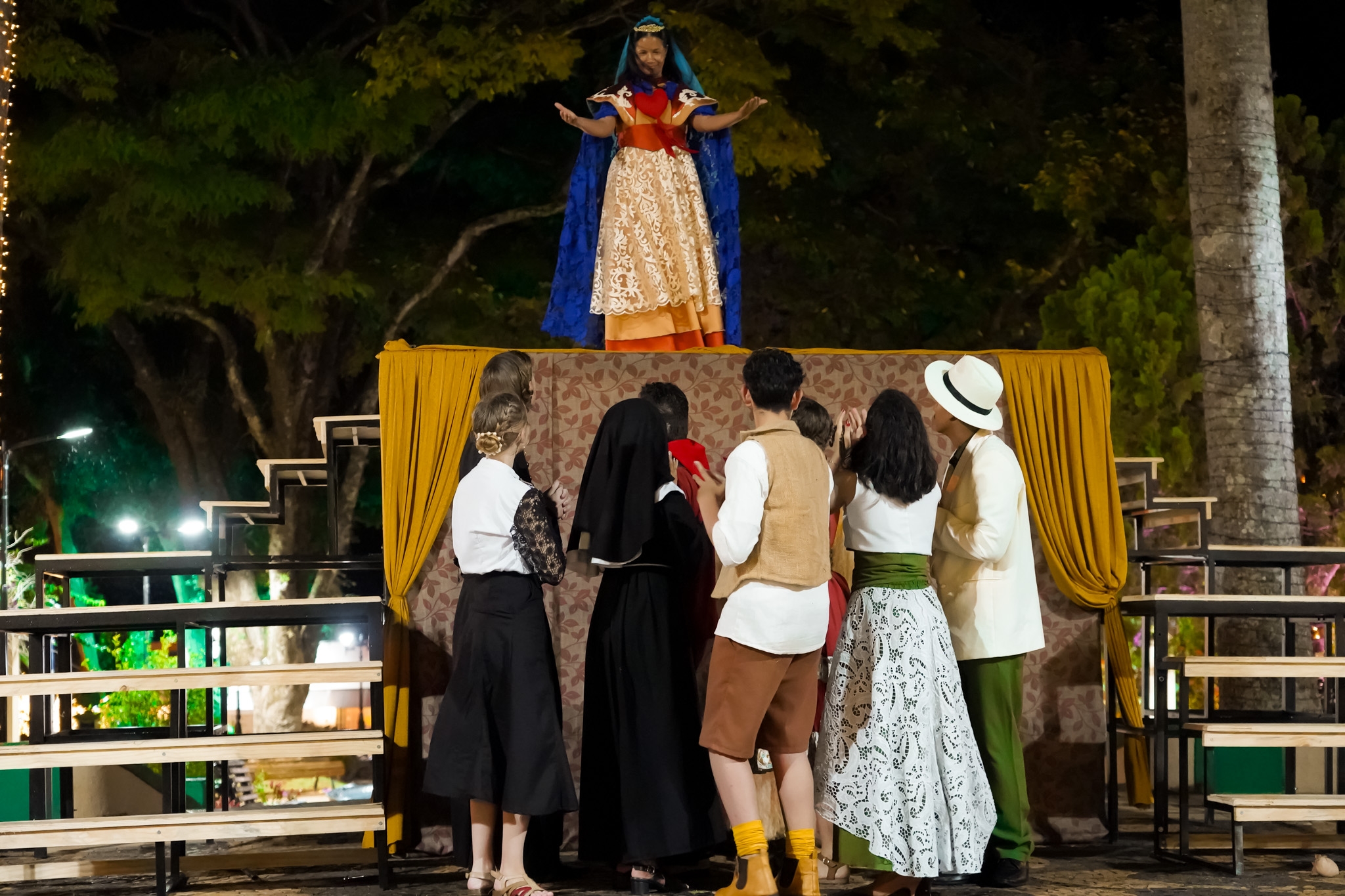 A abertura ficou por conta da Banda Professor Renato Massaro, às 19h, com um concerto natalino e um repertório preparado especialmente para a ocasião. Em seguida, às 20h, o público acompanhou o espetáculo “Auto da Compadecida”, apresentado pelo Projeto Novos Artistas – Especial Ariano Suassuna, que levou ao palco humor e a força da cultura nordestina, em uma interpretação envolvente de nossos talentosos jovens santa-rosenses.