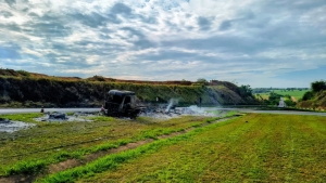 Prefeitura articula com o DER a retirada de carcaça de caminhão que veio a pegar fogo na Rodovia Padre Donizetti