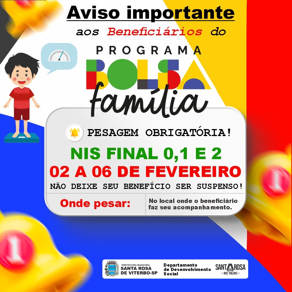 A pesagem é obrigatória para todos os beneficiários do Programa Bolsa Família.