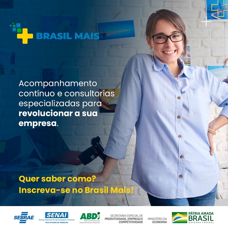 O programa do Sebrae, Brasil Mais está com as pré-inscrições abertas para o começo de novembro. A empresa do participante terá um acompanhamento individual de um ALI-Agente Local de Inovação durante 4 meses, com ações individuais e coletivas, além do apoio de consultores do Sebrae.