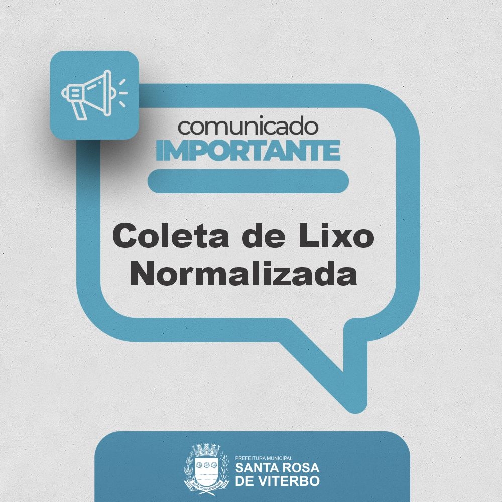 A Prefeitura Municipal, em conjunto com a empresa PASS, informa que o serviço de coleta de lixo já está normalizado e sendo realizado regularmente em todo o município.