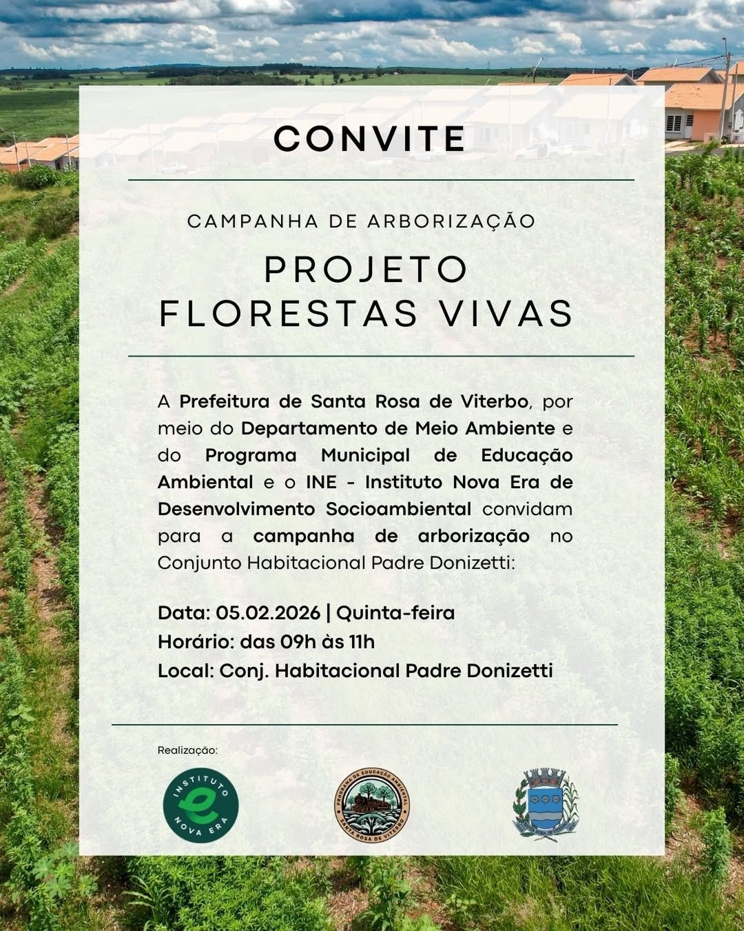 O Programa de Educação Ambiental é um projeto da Prefeitura Municipal de Santa Rosa de Viterbo em parceria com o INE - Instituto Nova Era de Desenvolvimento Socioambiental. #ArborizaçãoUrbana #FlorestaViva #SantaRosaDeViterbo #institutonovaera #agrofloresta