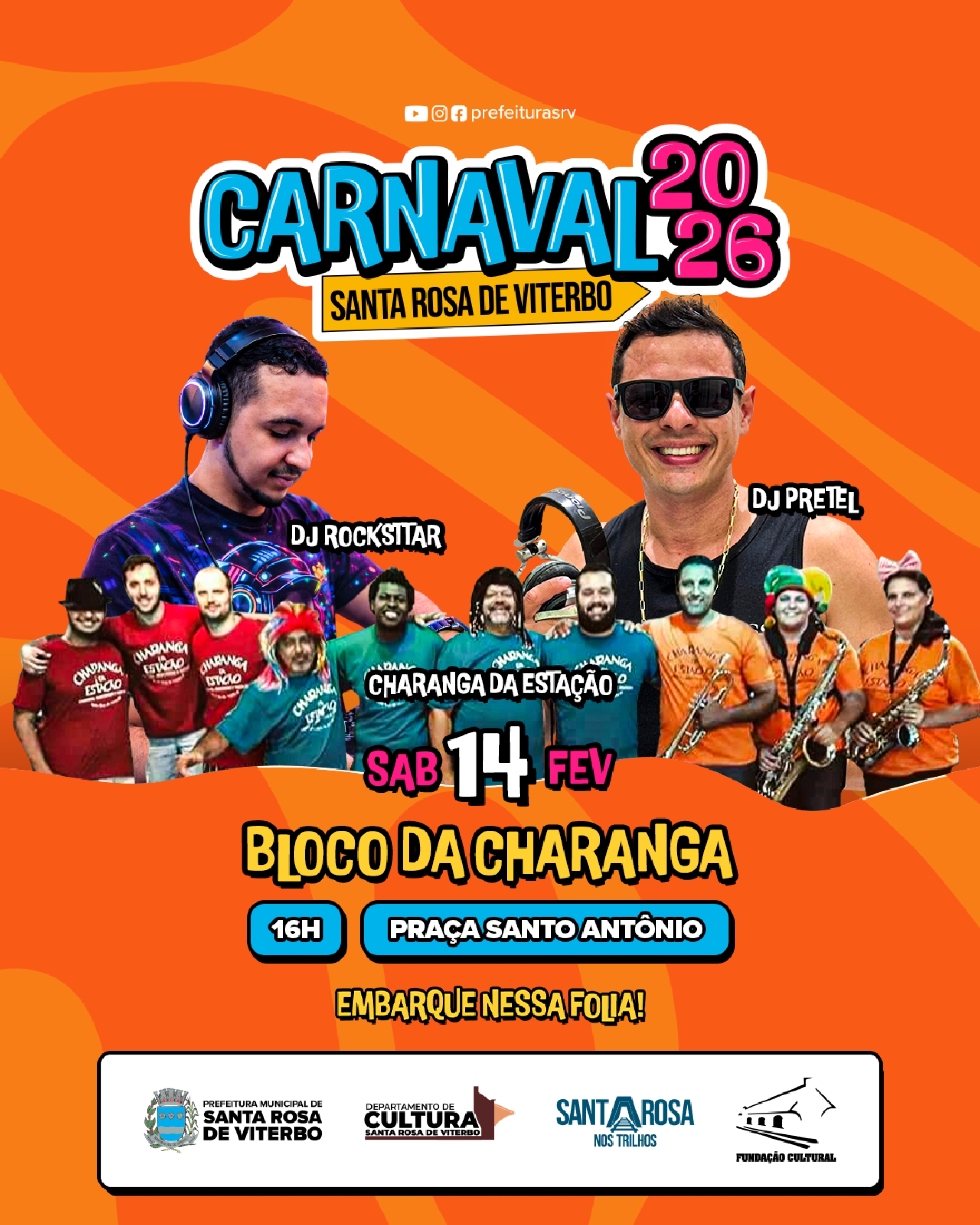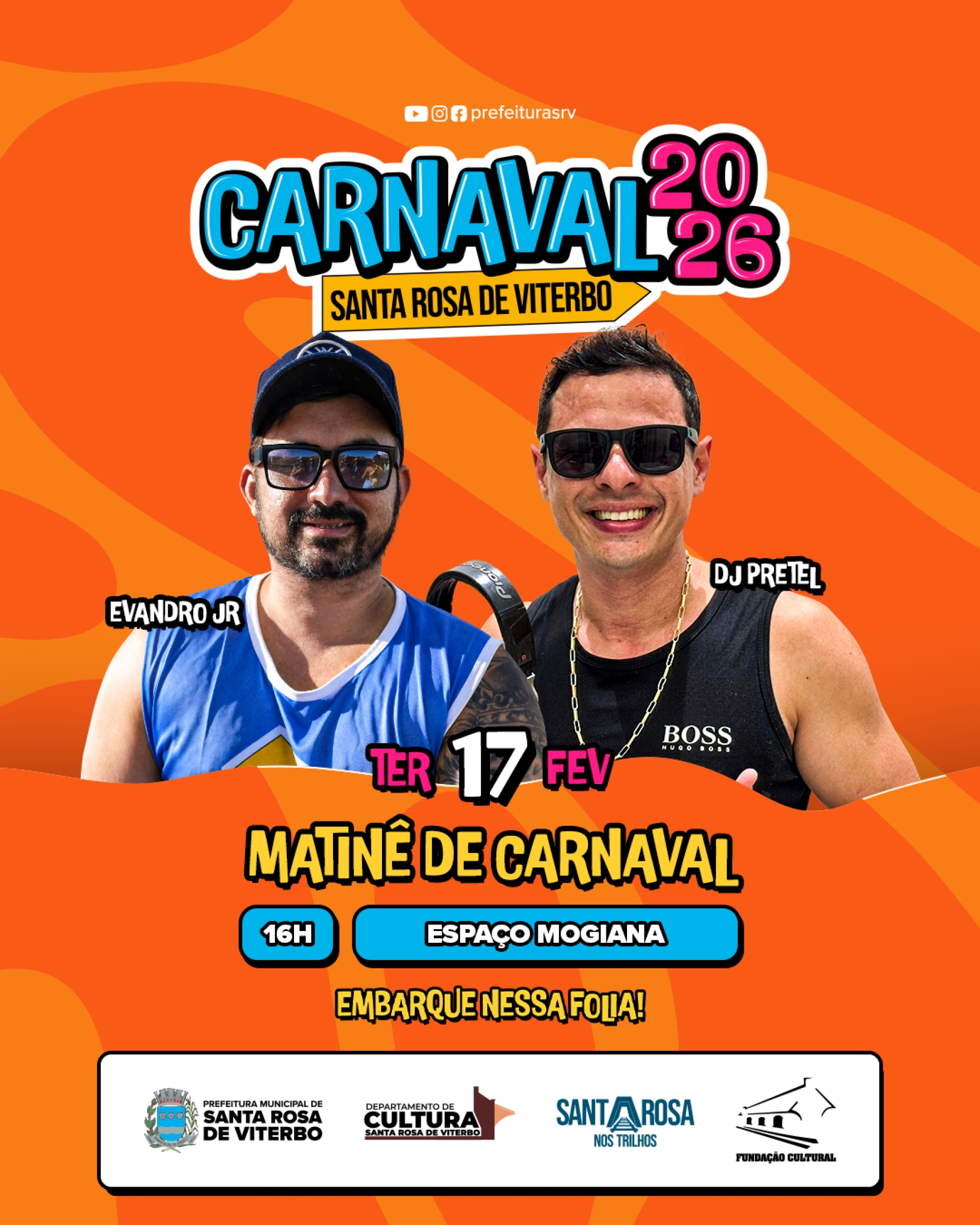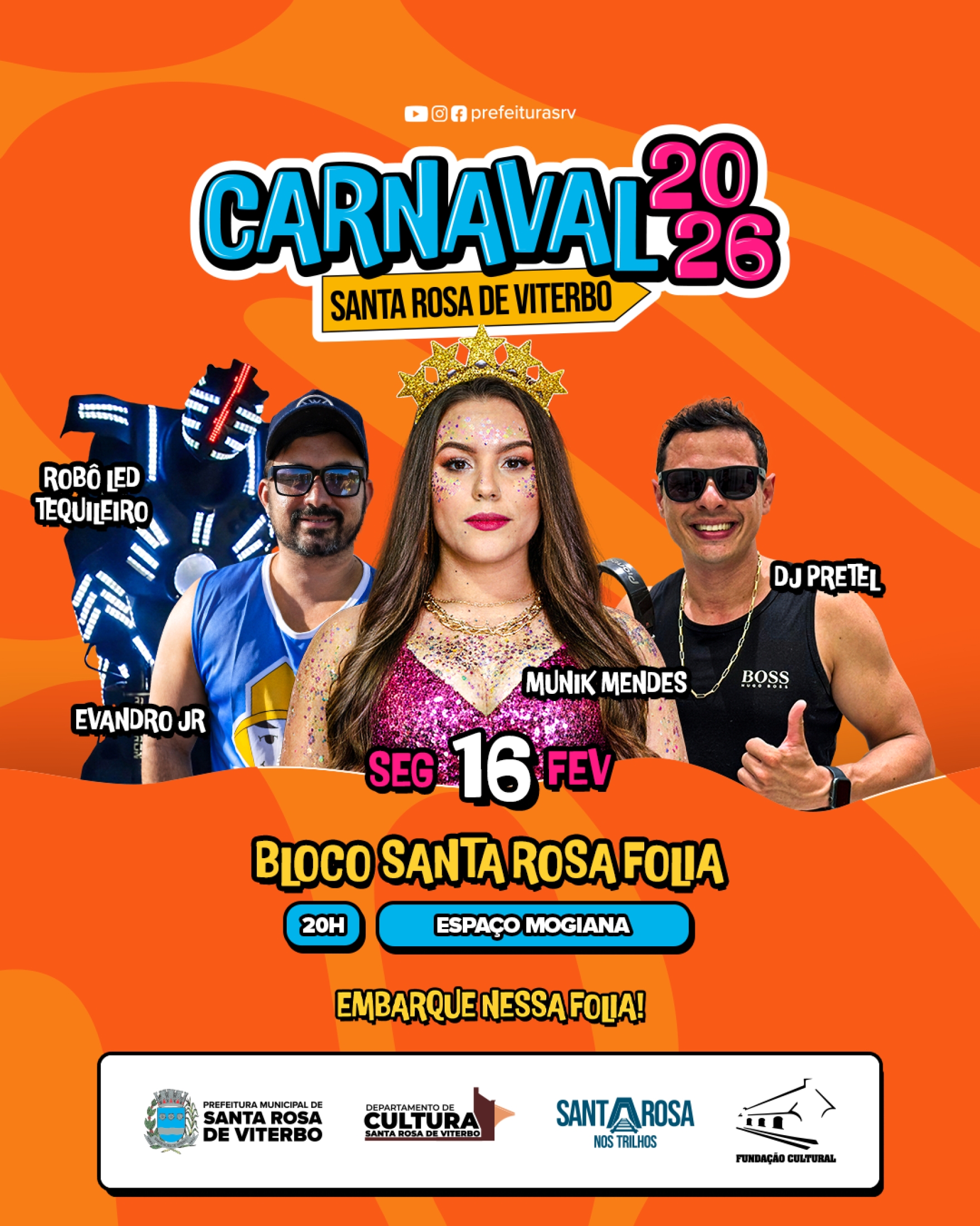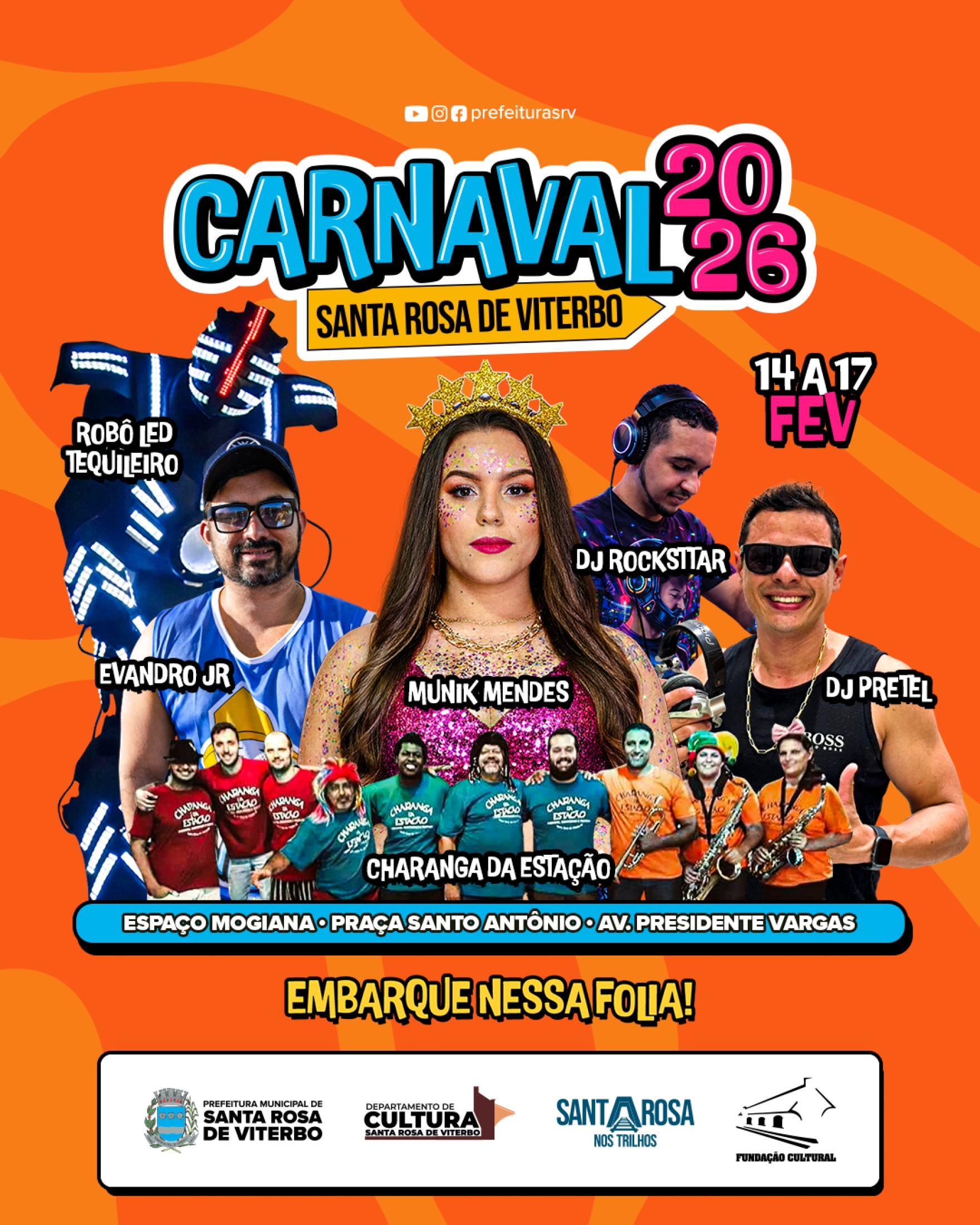Realização: Prefeitura Municipal de Santa Rosa de Viterbo, por meio do Departamento de Cultura e da Fundação Cultural, com apoio da Câmara Municipal.