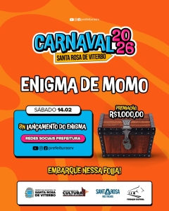 A divulgação do enigma da Caça ao Tesouro de Momo, que começa neste sábado, será feita através da “rede social”, da Prefeitura Municipal de Santa Rosa de Viterbo, meio utilizado assim desde 2022. Nos anos 1981 e 1982 a divulgação foi feita pelo jornal Santa Rosa Notícias. Outro jornal, O Santa Rosa, fez a divulgação em 1983 e depois de 1990 até 1999. O Jornalzão trouxe os enigmas do Momo de 2.000 a 2020. Esta tradição já dura 45 anos e a intenção foi sempre de propor uma brincadeira tranquila e saudável, para continuar, ao povo santa-rosense e dos que nos visitam.