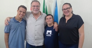 Arthur Sepryano Rocha Rodrigues e Ryan Carlos Ramos Assis Cunha, junto com a terapeuta ocupacional Camila Badan, da Clínica Babrit, receberam a autorização do prefeito Omar Nagib para a realização de um piquenique no Bosque, que será realizado no dia 14/03, das 9h às 11h.