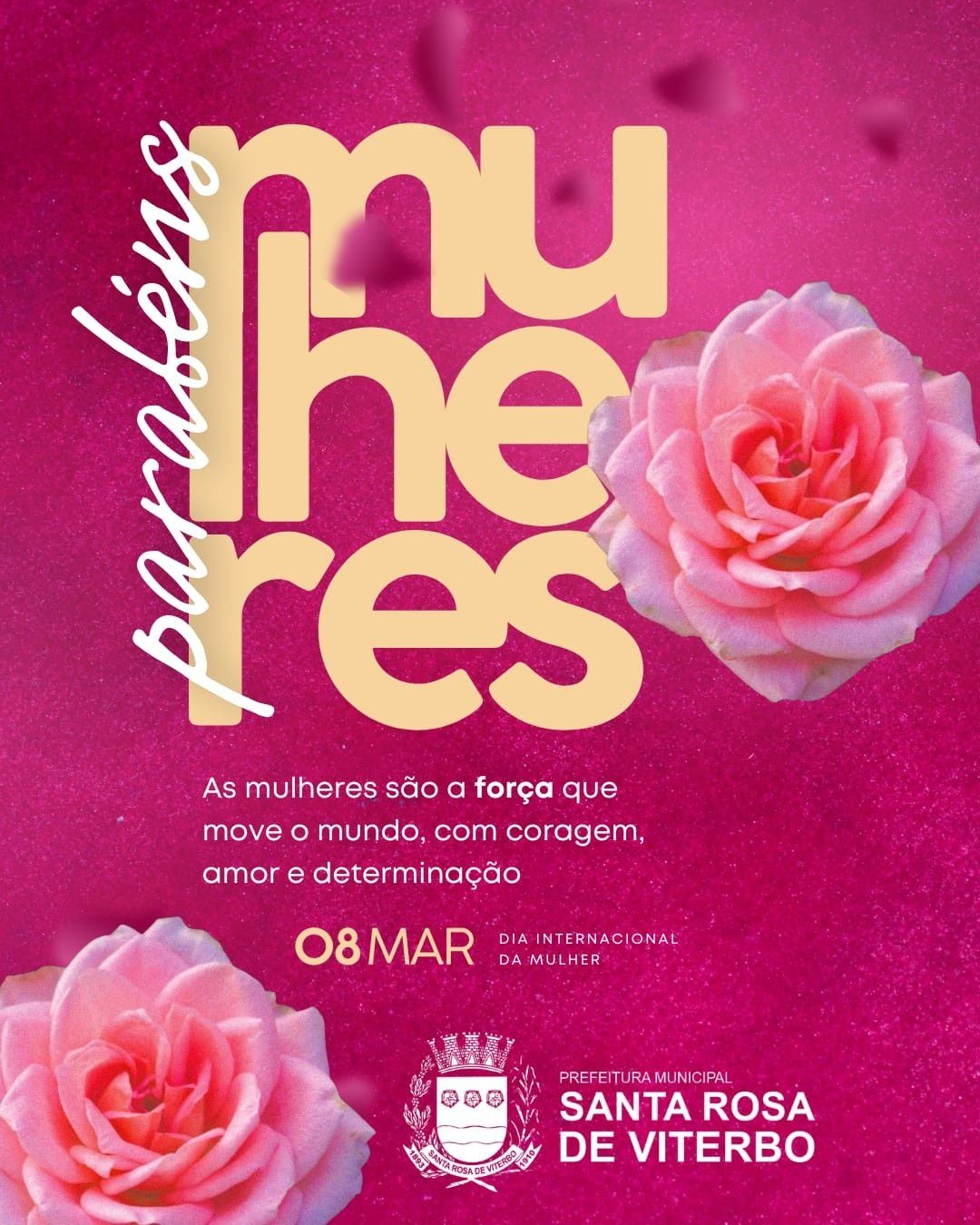 A Prefeitura de Santa Rosa de Viterbo parabeniza todas as mulheres pelo Dia Internacional da Mulher, celebrando sua força, sua presença e sua contribuição para uma cidade cada vez melhor.