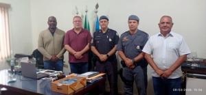 O prefeito Omar Nagib recebeu em seu gabinete a visita institucional do comandante do 51º Batalhão de Polícia Militar do Interior, tenente-coronel Rodrigo Humberto Trevisan, e do capitão Thiago Paris, comandante da 4ª Companhia do batalhão.