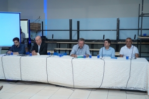 A Prefeitura de Santa Rosa de Viterbo participou, nesta terça-feira (31), da audiência pública promovida pela Câmara Municipal para apresentação da proposta de revisão e atualização da Lei Orgânica do Município. Estiveram presentes o chefe de gabinete Guilherme Márcio Felizardo, a diretora de Planejamento e Finanças Ana Maria Belavenuto, o diretor administrativo Jadir Antônio da Silva, além de outros integrantes da administração e da equipe técnica da Prefeitura que contribuíram com a elaboração do projeto.