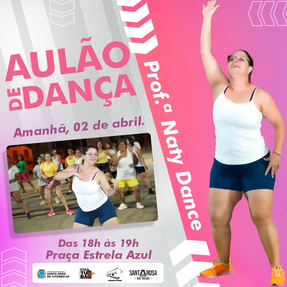 Nesta quinta, 02 de abril, acontece um super aulão de dança com a professora Naty Dance na Praça Conde Francisco Matarazzo (Praça Estrela Azul)!