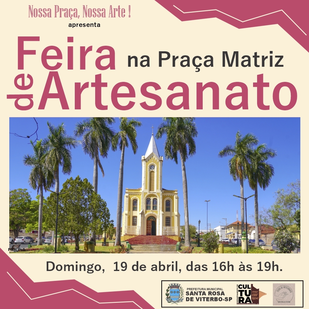 Neste domingo, 19 de abril, a partir das 16h, tem Feira de Artesanato na Praça Matriz (Dr. Guido Maestrello).