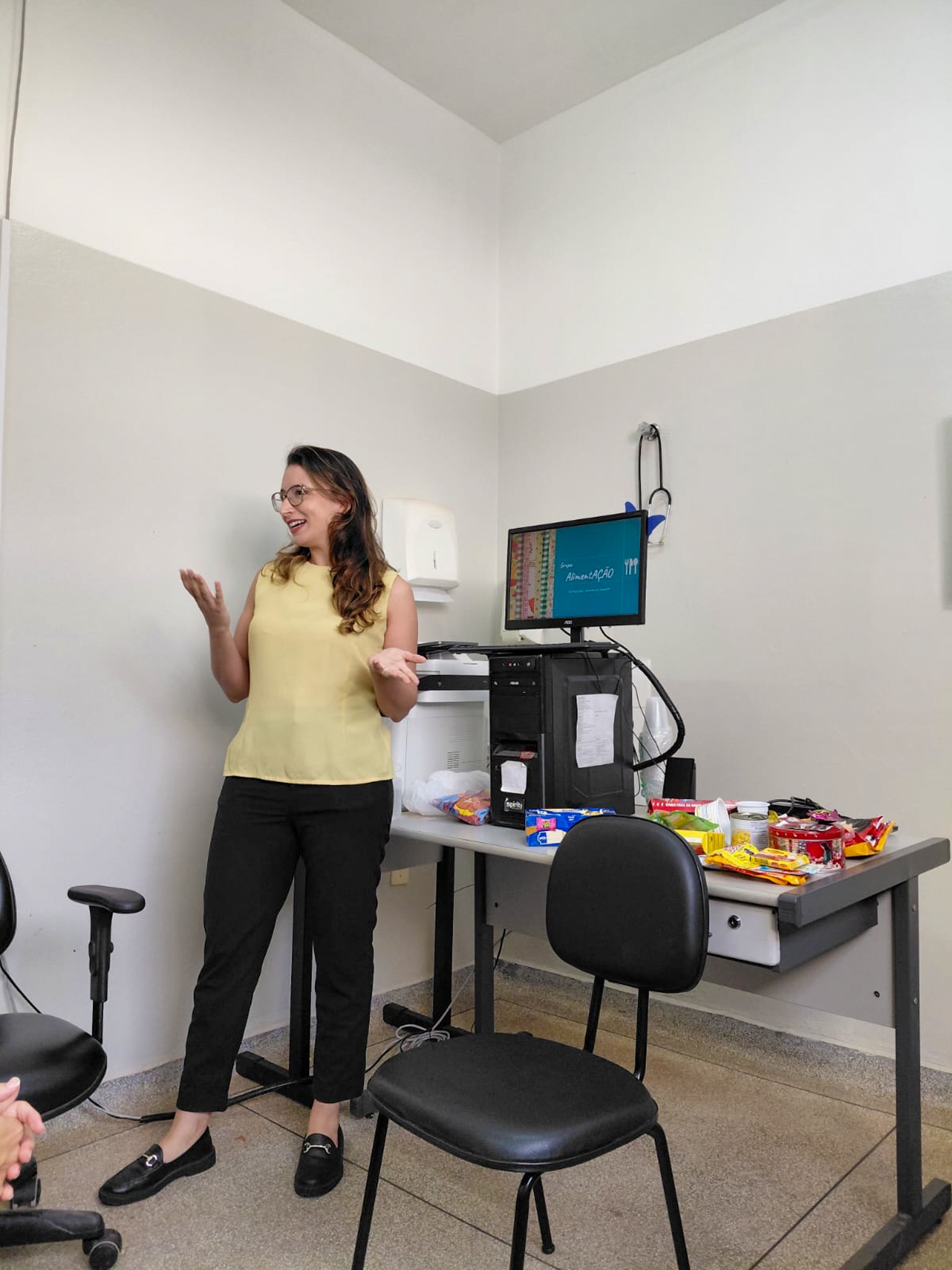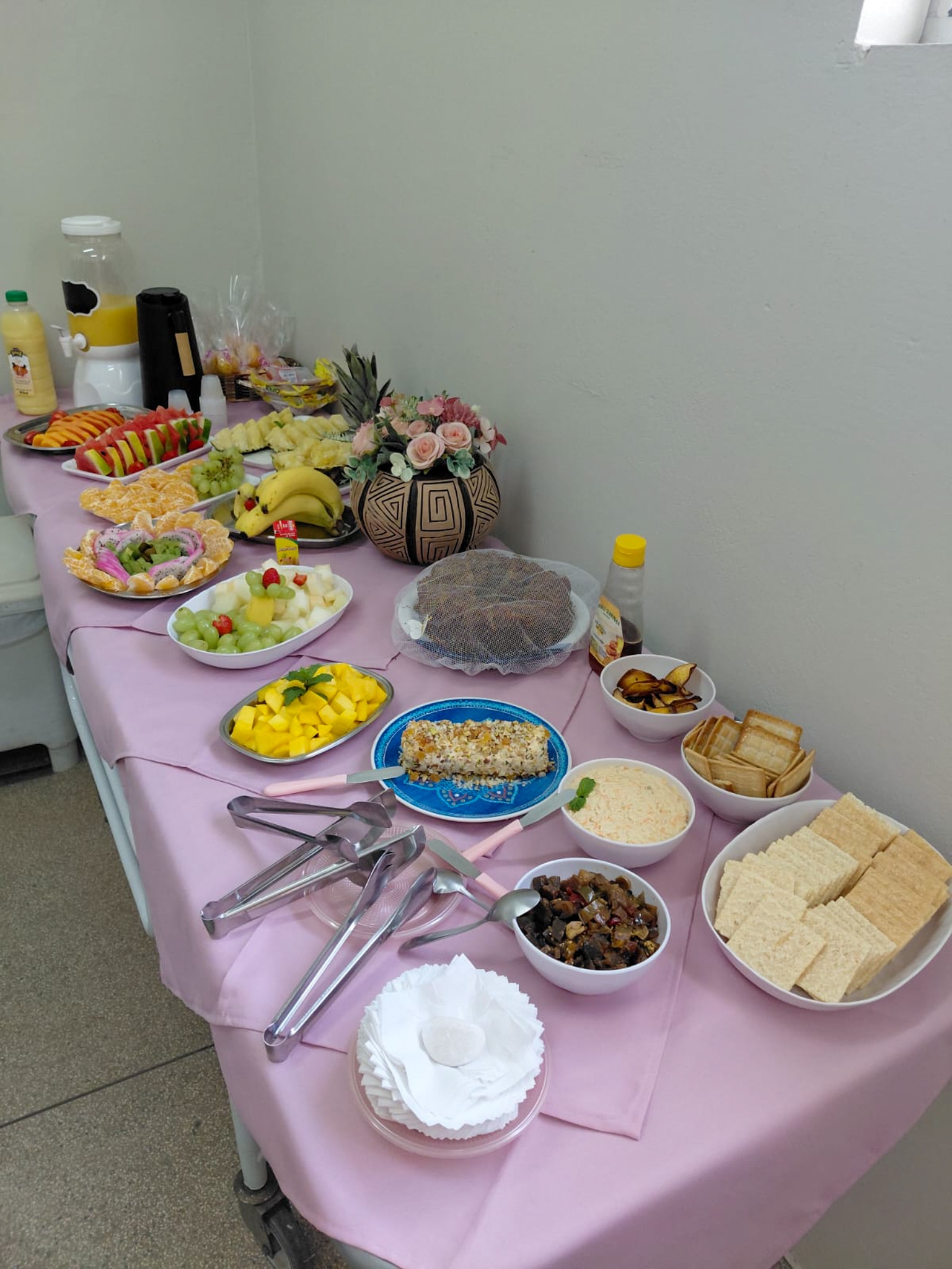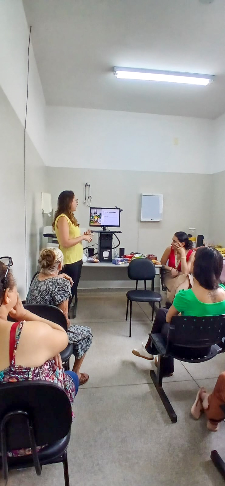 Durante a visita, foi ministrada uma palestra sobre alimentação para um grupo de pacientes. Além de abordar o tema alimentação saudável, foi oferecida uma mesa de café da manhã com frutas e alimentos nutritivos que fazem parte do cardápio.