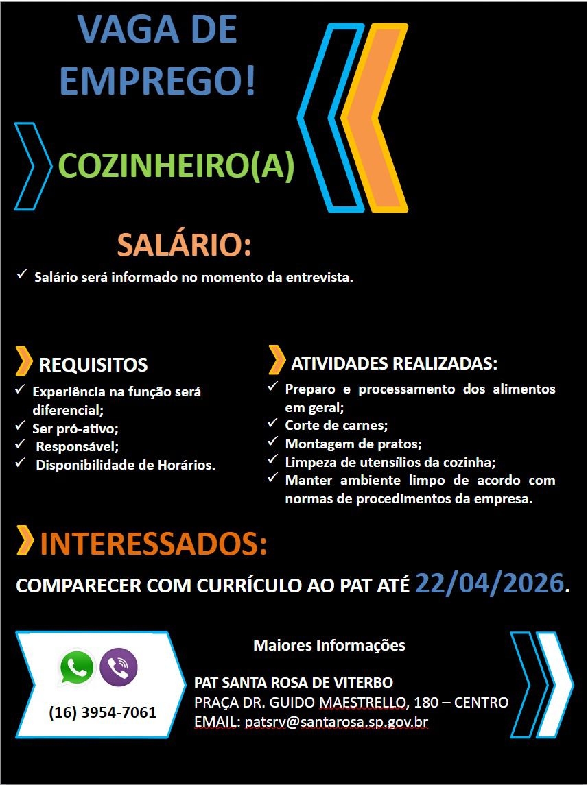 Vaga de emprego em aberto no PAT de Santa Rosa de Viterbo