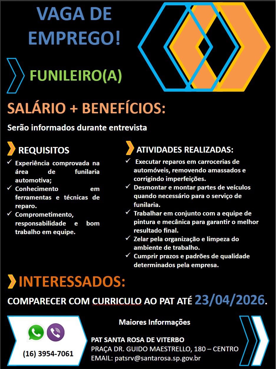 Vaga de emprego em aberto no PAT de Santa Rosa de Viterbo